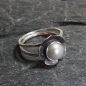 Dieser Ring ist aus 925er Silber in Form einer Blüte gearbeitet und ergänzt mit einer Zuchtperle.
